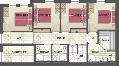 • 1 Bad mit Dusche, WC und integrierter Sauna